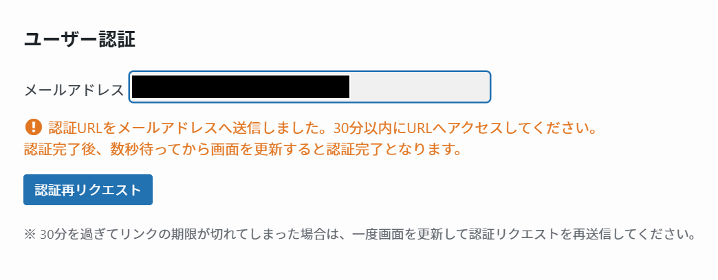 - 「認証リクエストを送信」ボタンをクリックしても何も画面が変わらずにメールが届かないという現象でしたら、数日〜1週間ほどで自然と解決する場合が多いようです。しばらく期間を空けて再度お試しください。