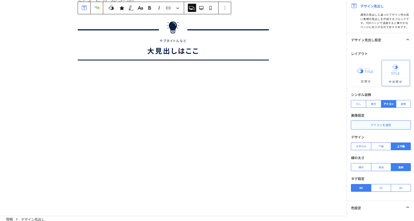 見出し部分ですが、装飾ができるのでデザイン性高く作れます。SWELLはよくある見出しでしか作れないので、LPみたいなのを作りたいときが画像で別途作らないといけなくなります。